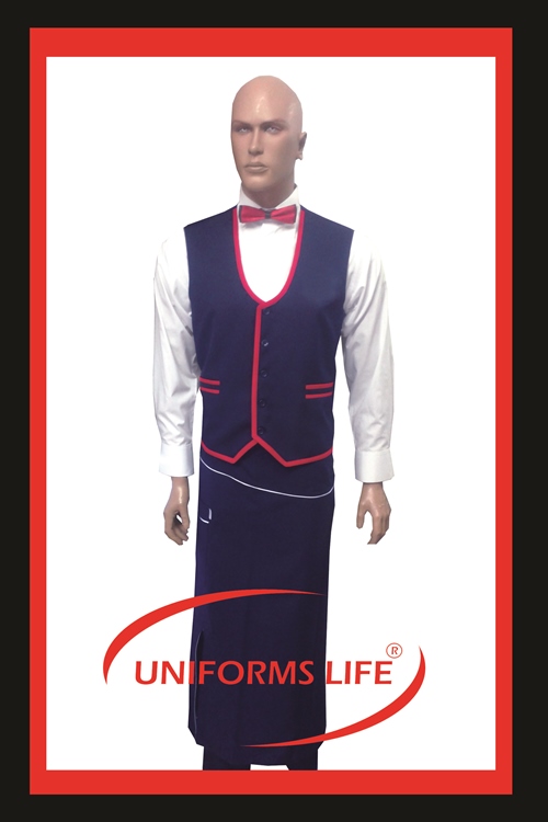 KIRMIZI BİYELİ LACİVERT GABARDİN YELEK