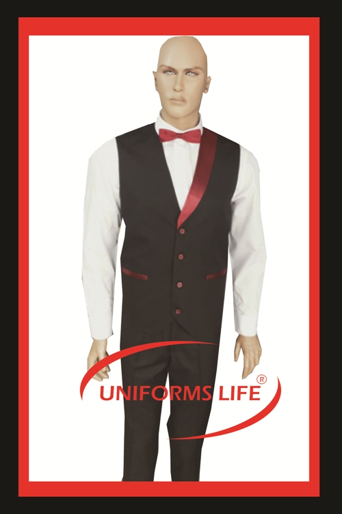 BORDO SATEN KUMAŞLA HARMANLANMIŞ SİYAH GABARDİN YELEK