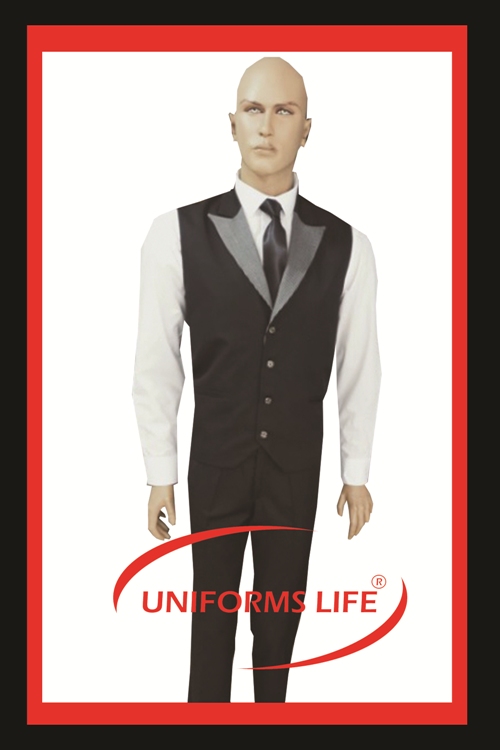 ÇİZGİLİ YAKALI SİYAH GABARDİN YELEK