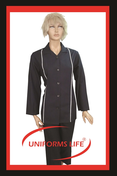 Lacivert Apaş Yakalı Bayan Housekeeping Takım -