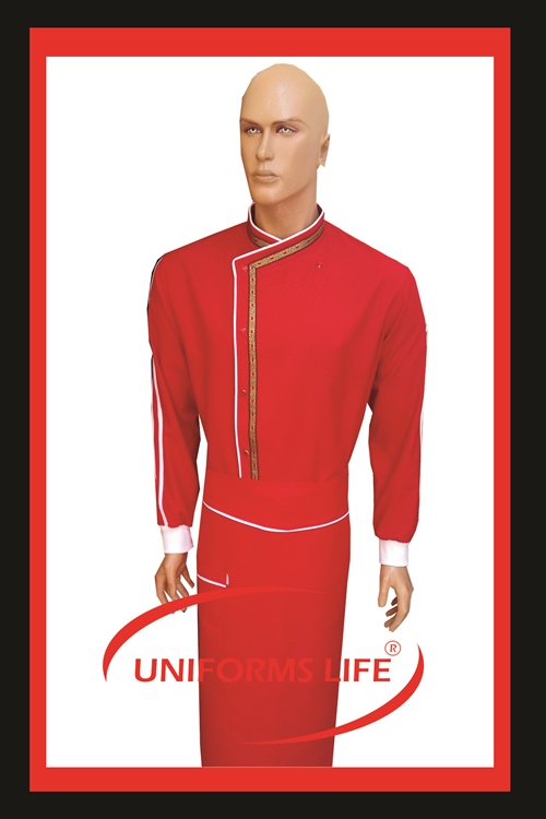 KIRMIZI ALPAKA KUMAŞTAN ÜRETİLMİŞ CHEF TAKIMIMIZ SIRMALAR VE BİYE İLE KOMBİNLENEREK SİZLERİN BEĞENİSİNE SUNULMUŞTUR.